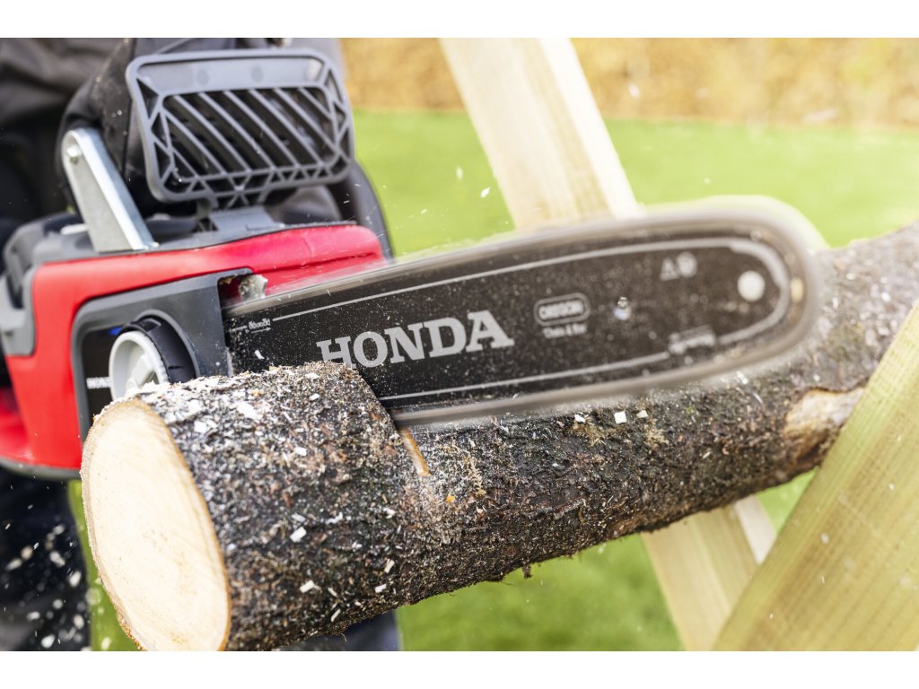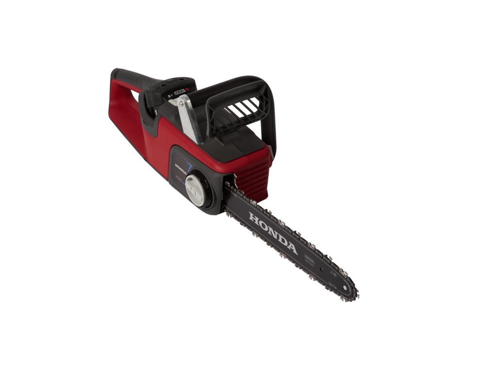 Pro lehkou a přesnou práci a manipulaci je celá pila dokonale ergonomicky vyvážena. Kratší lišta v celkové délce 35cm poskytuje pile mimořádnou ovladatelnost. Madlo držení je opatřeno bezpečnostní pojistkou, která zaručuje v případě uvolnění okamžité vypnutí stroje. Na rukojeti je umístněn vypínač, který zajišťuje při stisknutí plynulé a postupné spuštění stroje. Díky příjemné ovládácí rukojeti je držení pily při práci velmi stabilní, bezpečné a pohodlné a stroj je vhodný pro jakékoliv zahradnické práce v domácím použití. Pomocí "semi-automatic" zařízení je napínání pilového řetězu velmi jednoduché a není potřeba žádného nářadí. Ztrátové mazání řetězu je zde plně automatické a díky spolehlivému olejovému čerpadlu je podáváno příslušné množství mazacího oleje přímo do vodící drážky lišty. Díky konstrukci lišty a posuvu řetězu se dopraví každá kapka mazacího oleje přesně tam kde je to nutné. Pro kontrolu hladiny mazacího oleje je pila opatřena kontrolním olejoznakem. O pohon se stará výkonný bezuhlíkový elektromotor s vysokou odolností proti přetížení a přímým náhonem na řetězku. O napájení elektromotoru se stará vysoce výkonný Li-ion akumulátor s napětím 36 V s důmyslným vnitřním chlazením jednotlivých článků, což znatelně přispívá k delší výdrži akumulátoru pod vysokou zátěží. Akumulátory HONDA svojí hmotností patří k nejlehčím na trhu. Pila je mimořádně tichá a sousedé Vás při práci ani neuslyší.