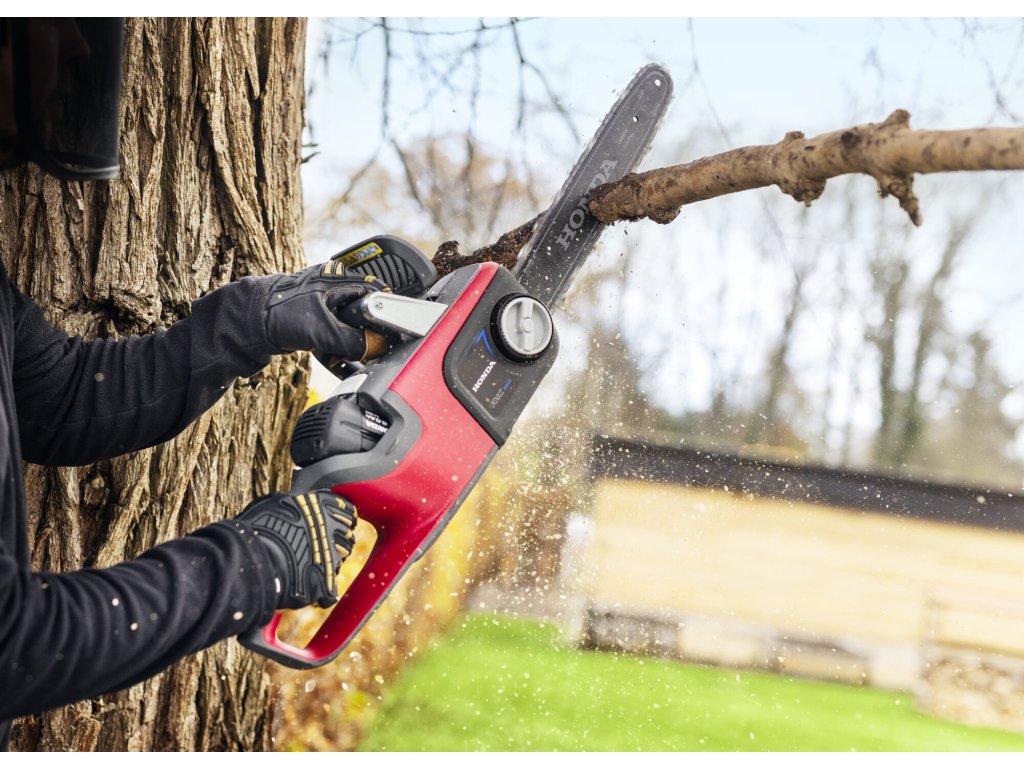 Tichá, lehká a snadno ovladatelná řetězová pila s lištou 35cm. Tato akumulátorová pila HONDA dostatečně plní nároky na vysoký výkon, bezpečnost a pracovní komfort a je tak ideálním pomocníkem při řezání palivového dříví o průměru do 25-30 cm, při péči o pozemek a zahradu v domácích podmínkách. S vysokou řeznou rychlostí 14 m/s a silným elektromotorem ji nic nezastaví. Technologie automatické regulace rychlosti řezu odstraňuje případné záseky řetězu ve dřevě. Je tak zaručeno hladké řezání i toho nejodolnějšího tvrdého dřeva a suků. Pila je vhodná pro řezání v uzavřených prostorech nebo v místech citlivých na hlučnost. Je dodávána samostatně a pro použití je nutné baterii a nabíječku dokoupit zvlášť nebo použít z jiného akumulátorového stroje značky HONDA. Z hlediska nejnižší hmotnosti pro napájení doporučujeme použít baterii HONDA 36V, 2Ah, která vydrží na dobu chodu cca 35 min.