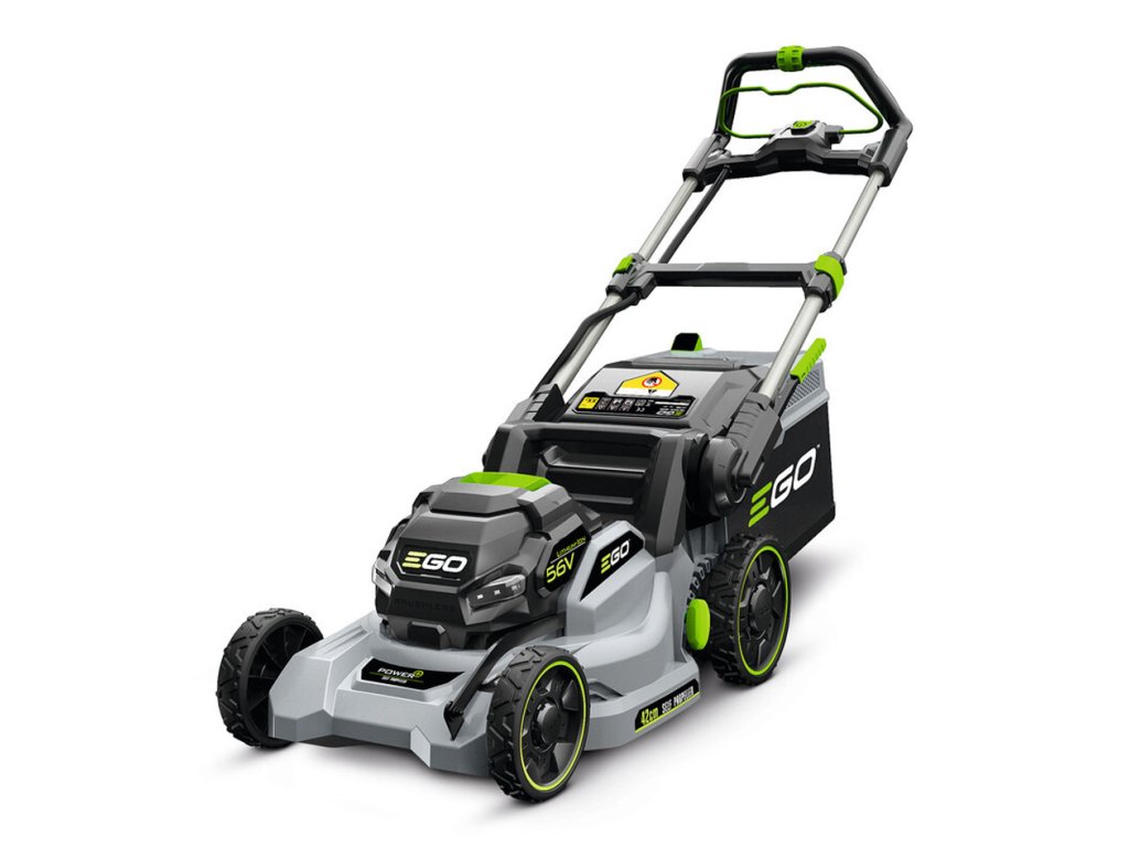 Model EGO LM 1702E-SP - záběr sečení 42cm a plynule proměnlivý pojezd, objem sběrného koše 55L, teleskopická a výškově nastavitelná komfortní rukojeť.