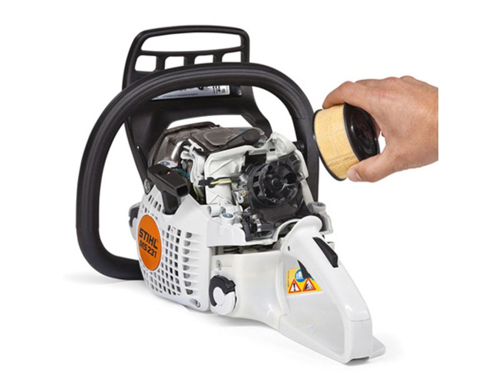 Kompaktní model motorové pily STIHL MS 231 o výkonu 2,0 kW dosahuje až o 20% nižší spotřebu paliva a až o 50% nižší emise zplodin ve srovnání s pilami vybavenými konvenčním dvoutaktním motorem, a to díky technologii motoru STIHL 2-MIX. Vyniká snadnou údržbou a servisem díky jednodílnému, rychle demontovatelnému krytu a výborné je i chování při vedení stroje, především dostatečná tuhost a nízká úroveň vibrací.