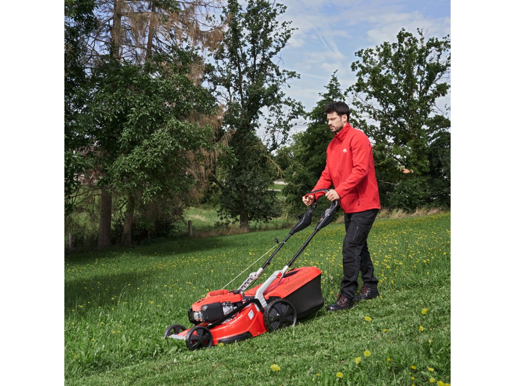 Díky použití mnoha robustních hliníkových komponentů, jako je vázání řídítek, rukojeť přední brzdy a nastavení výšky řídítek, je tato sekačka se šířkou záběru 46 cm velmi odolná.