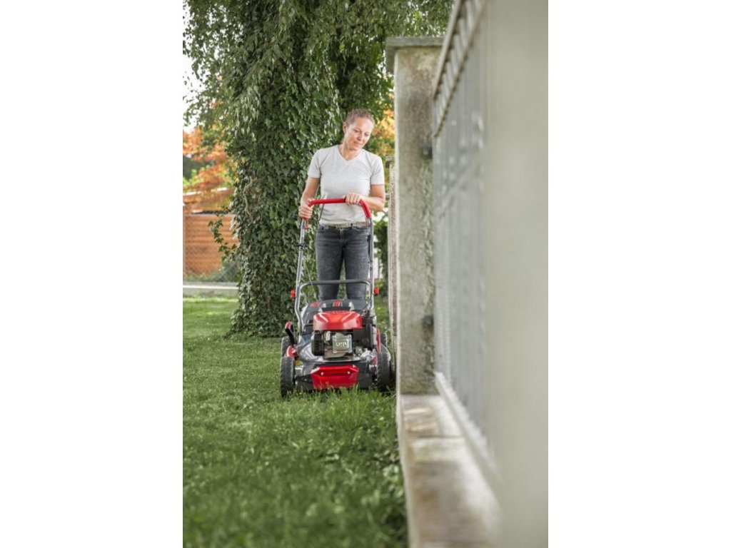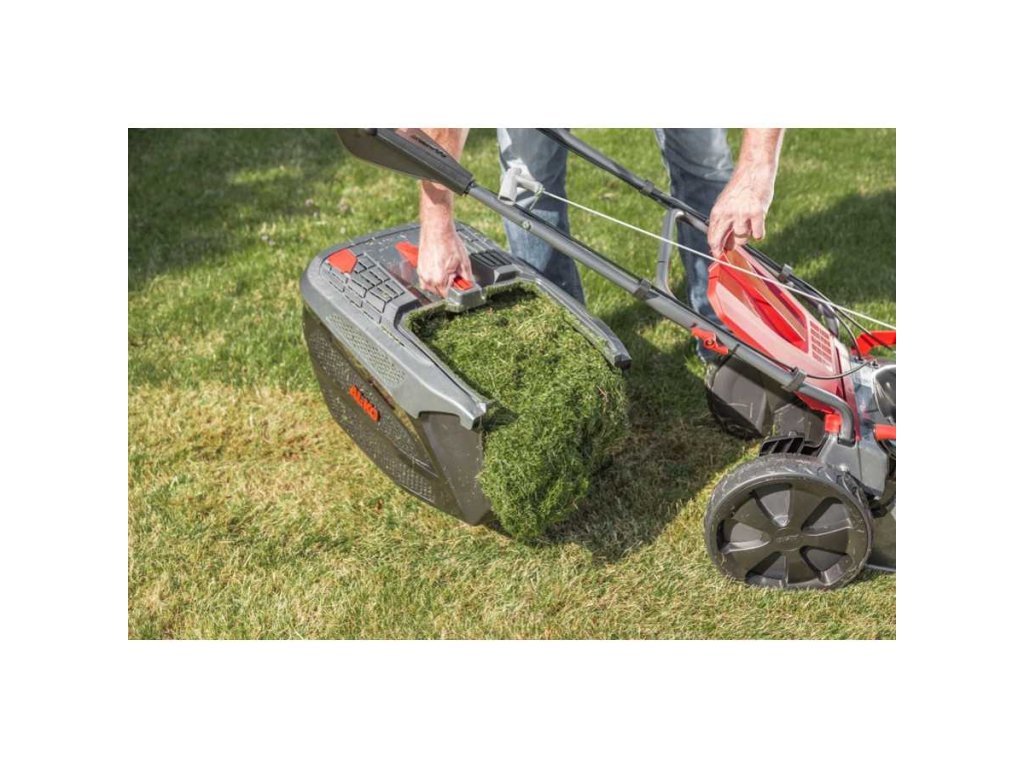 Benzínová sekačka na trávu s pracovní šířkou 46 cm umožňuje efektivní sečení travních ploch až do velikosti 1100 metrů čtverečních. Výšku sečení lze nastavit centálně v 7 krocích od 30 mm do 80 mm pro dokonalé přizpůsobení vašim požadavkům. Výkon zajišťuje benzínový motor AL-KO PRO s 2,1 kW, který je konstruovaný s ohledem na velkou zátěž při nízké spotřebě paliva a dlouhou životnost. Díky funkci 4INONE lze trávník posekat a dokonale dopravit do sběrného koše o velikosti 65 l, který disponuje ukazatelem stavu naplnění. Další výhodou je možnost mulčování a funkce bočního výhozu. Skvělá aerodynamika sekačky s technologií MaxAirflow zaručuje úplné naplnění koše, což v důsledku znamená, že koš nemusíte vyprazdňovat tak často, jako je tomu u konkurenčních sekaček. Pohodlí při práci zvyšuje ergonomicky tvarovaná rukojeť a XXL kola s kuličkovými ložisky a jednorychlostním pohonem.
