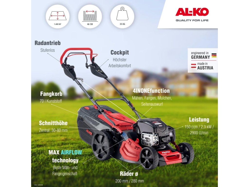 Zcela na míru vašim potřebám – tak se prezentuje plynule měnitelný pohon zadních kol Vario Speed. Nastavte rychlost snadno pomocí ovládací páčky. Naše sekačka na trávu je vyvinuta v Německu a vyráběna v Rakousku.