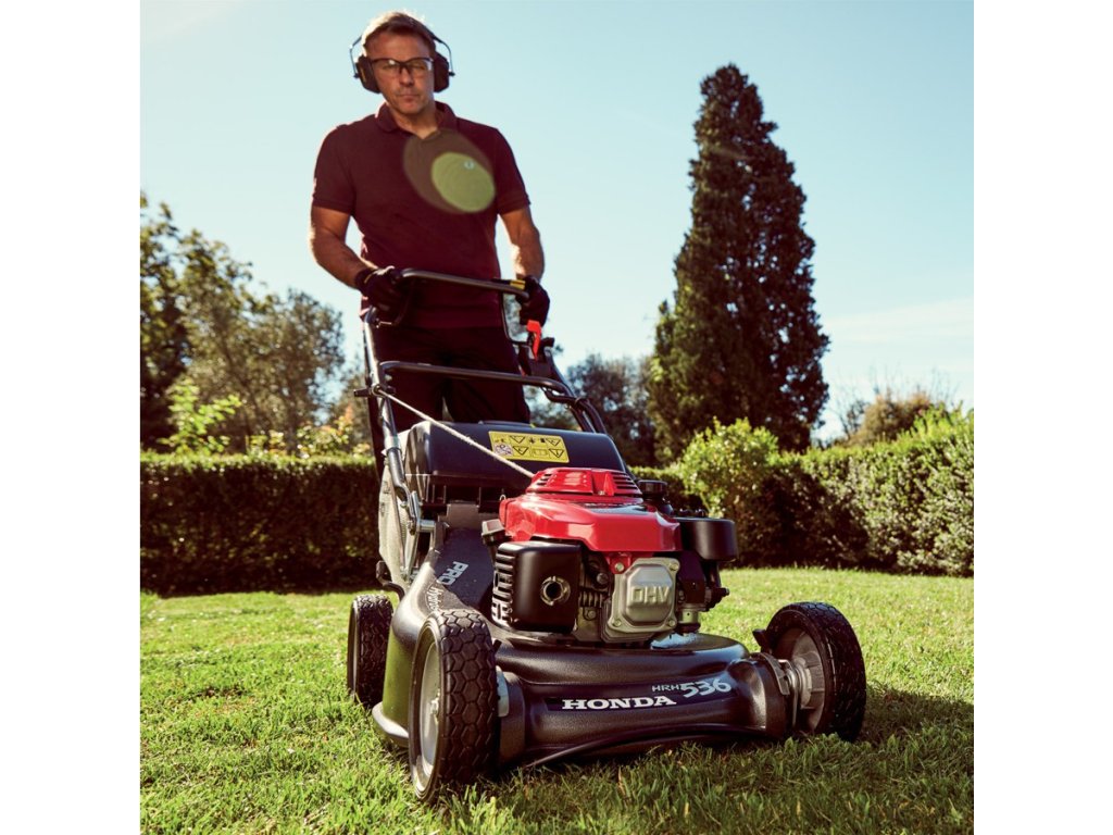 Honda HRH 536 HX: profesionální motorová sekačka s hydrostatickým pojezdem poháněným kardanovou hřídelí, s motorem "profi" řady GXV, s Roto-stopem®, na podvozku odlitém z hliníkové slitiny se záběrem sečení 53 cm, hliníkovými koly na průmyslových ložiscích a ovládací rukojetí namontována k podvozku sekačky s pomocnou vzpěrou a zesilovacím ramínkem.