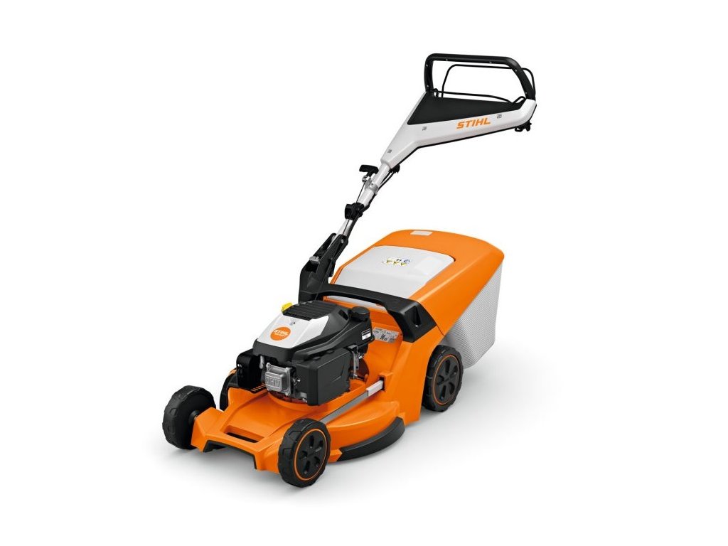 Benzínová sekačka STIHL RM 453 T je ideálním strojem pro soukromé práce na velkých trávnících. Komfortní pohon kol s jednou rychlostí vám pomůže efektivně postupovat zejména ve svazích. Díky výkonnému motoru a sériovému vybavení s více noži, integrovanou funkcí mulčování a bočním výhozem je tato sekačka vhodná jak pro sečení, tak pro mulčování. Posekanou trávu můžete buď přímo zachytit, nebo ji rozprostřít po trávníku pomocí bočního výhozu.