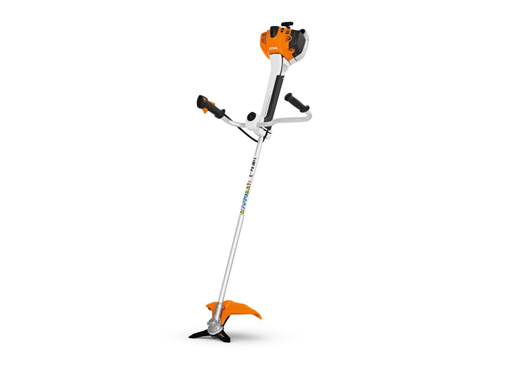 Pro vyžínání tuhé trávy. 4-bodový antivibrační systém STIHL, STIHL ErgoStart, multifunkční rukojeť, říditková rukojeť, nastavení polohy rukojeti bez použití nářadí, motor STIHL 2-MIX, STIHL M-Tronic.