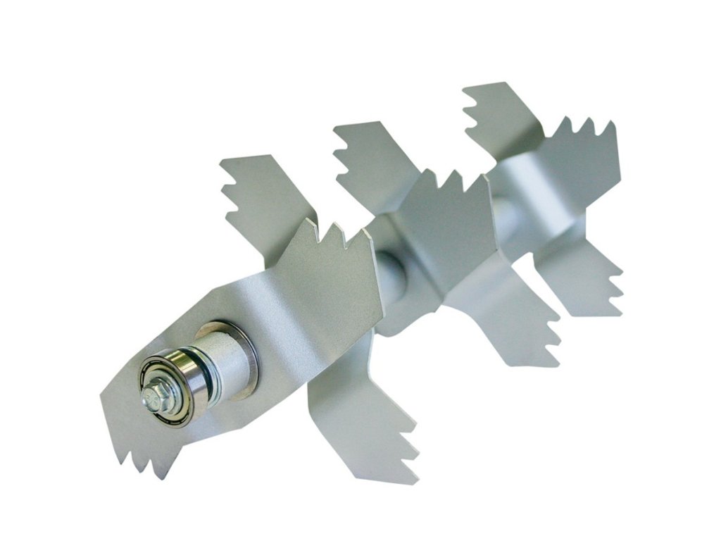 Výměnou válců bez nástrojů změníte vertikulační válec s 3 stupňovými ocelovými noži na provzdušňovací válec s efektivními háky na ocelových pružinách - kompletní péče o trávník v jediném přístroji.