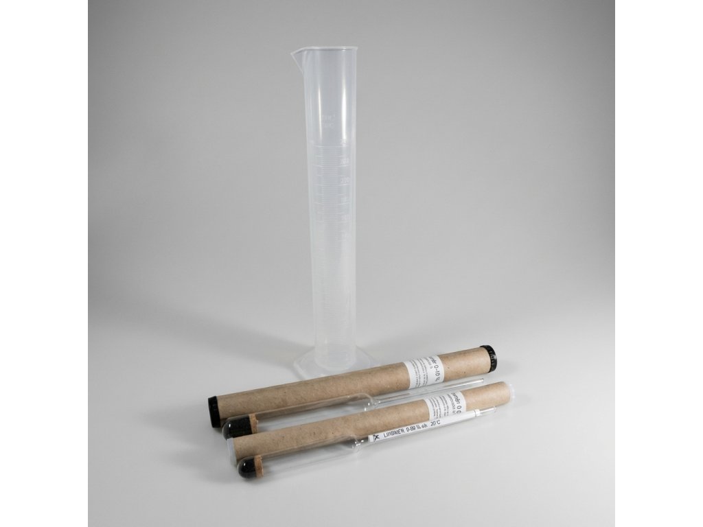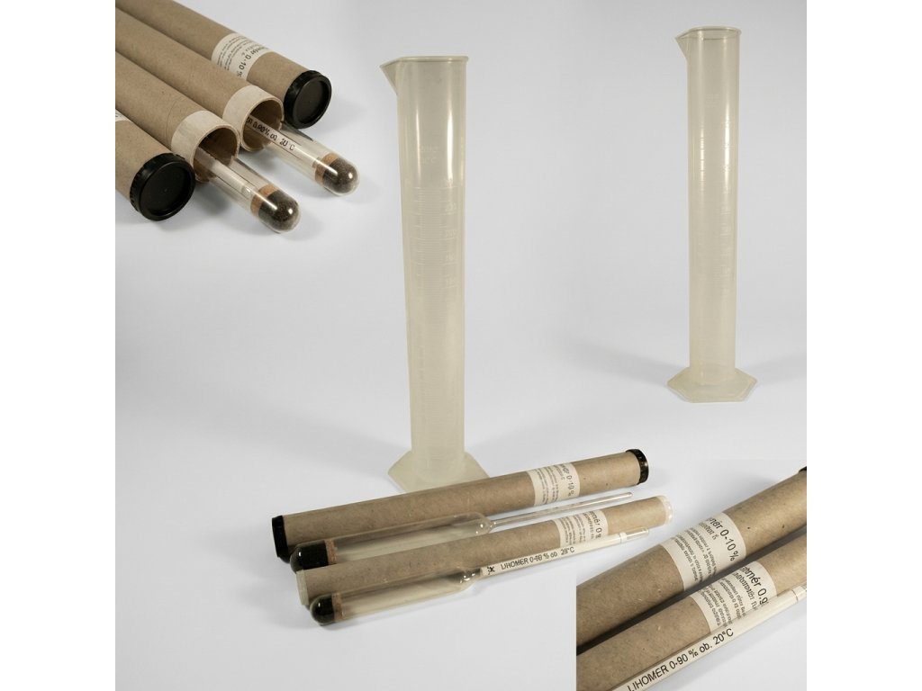 Cukroměr 0-10% (bez teploměru) + Odměrný válec 250ml (plastový) + Lihoměr 0-90% (bez teploměru)