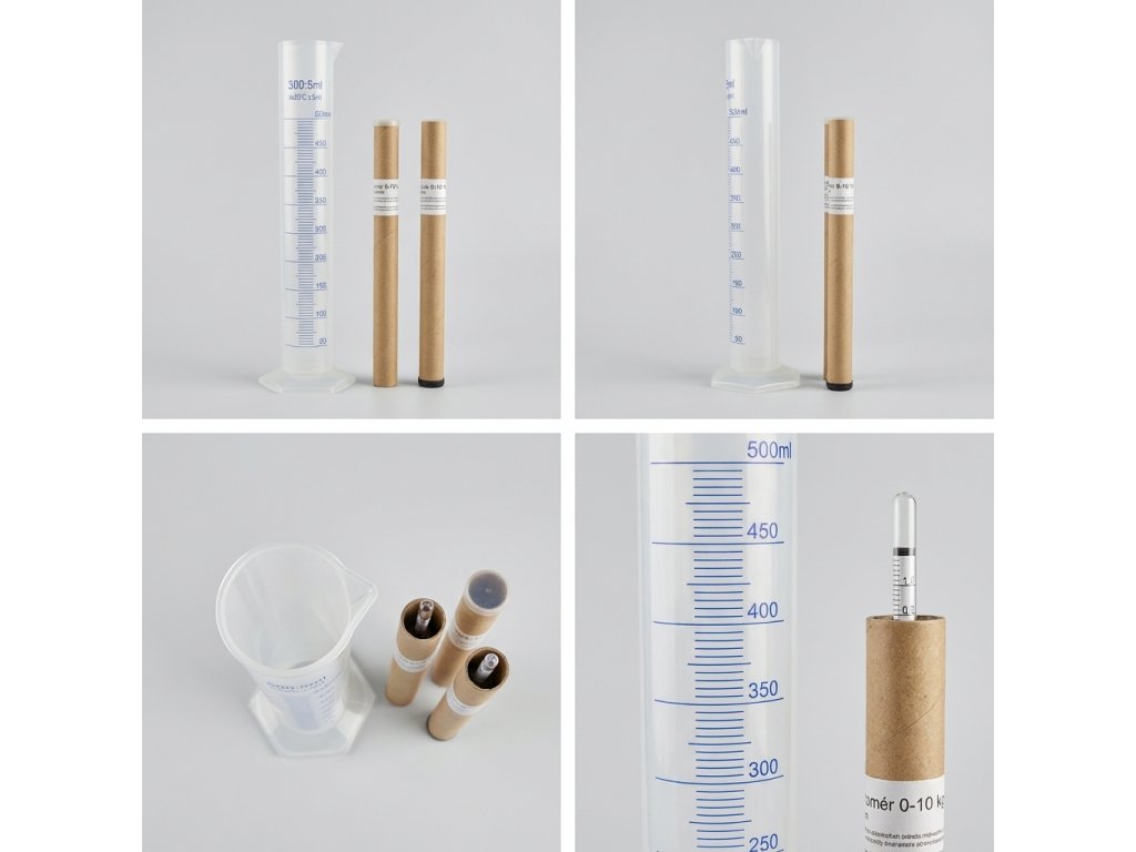 Cukroměr 0-10% (bez teploměru) + Odměrný válec 500ml (plastový) + Lihoměr 0-70% (s teploměrem)