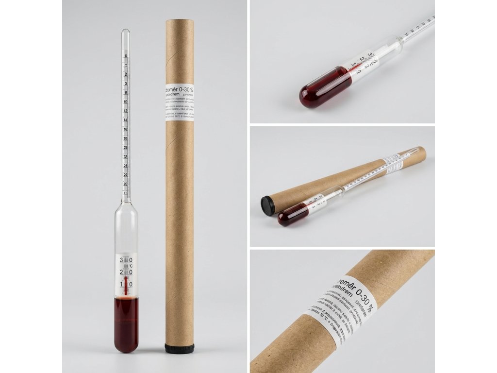 Cukroměr slouží k měření zbytkového cukru v kvasu / koncentrace sacharozy s vodou v procentech hmotnostního zlomku /.
