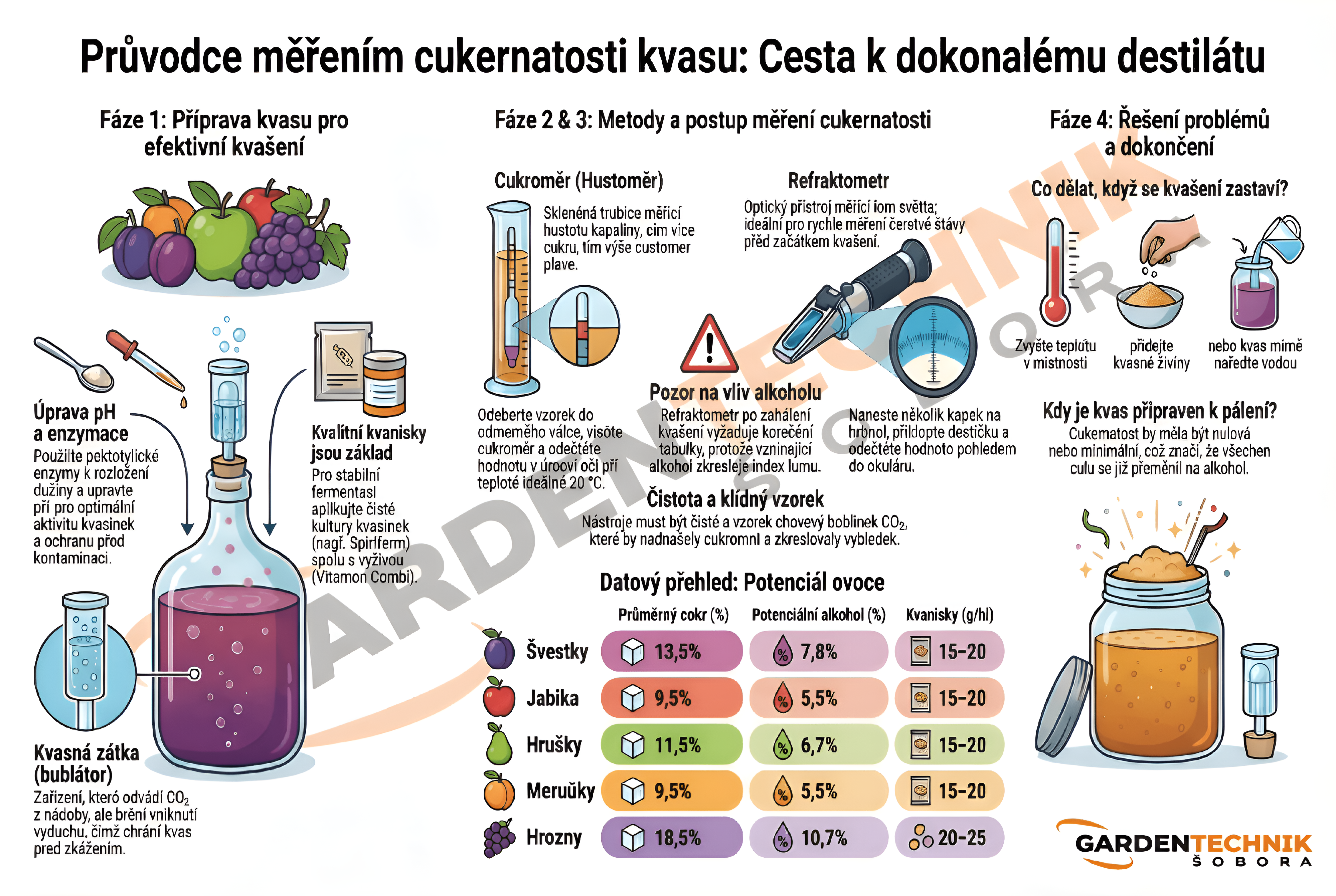 Přesnost je základem každého skvělého nápoje. Ať už se věnujete výrobě vína, piva, medoviny nebo ovocných šťáv, správné měření obsahu cukru a alkoholu vám umožní mít celý proces pod kontrolou. Věříme, že s našimi spolehlivými nástroji pro měření a kvašení můžete přeměnit vášeň v dokonalý výsledek. Umožní vám přesně sledovat průběh fermentace, od prvního měření cukernatosti moštu až po finální kontrolu obsahu alkoholu. Vyberte si z naší široké nabídky vše, co potřebujete pro to, aby vaše domácí výroba dosáhla profesionální úrovně.