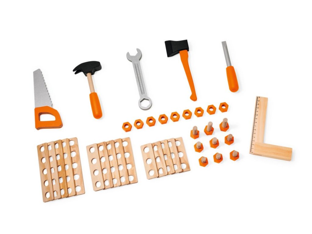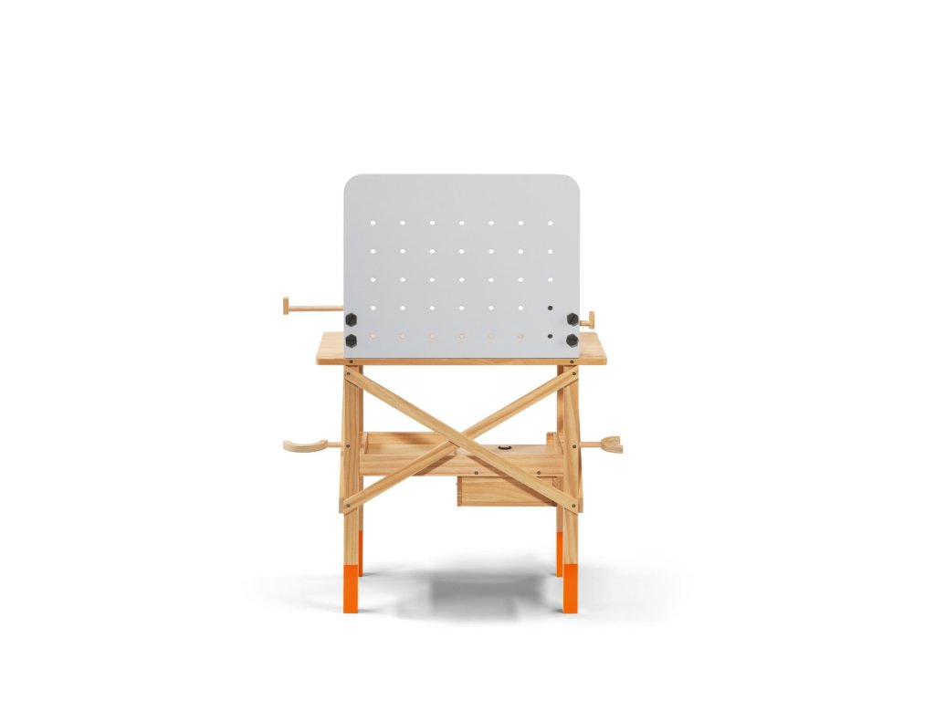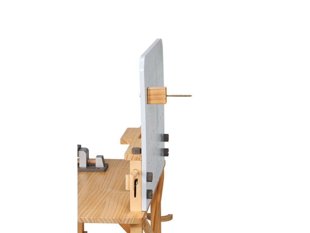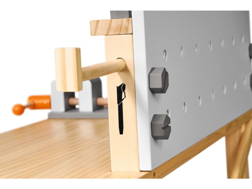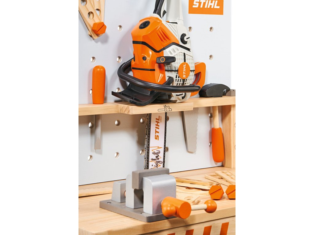 Stůl pro každého malého kutila. Pracovní stůl je vyroben ze dřeva a je vybaven držáky na celou řadu dětského nářadí STIHL: vejde se na něj motorová pila, foukač, křovinořez, helma i rukavice. Pracovní stůl s certifikátem FSC nabízí také dostatečný pracovní prostor pro největší projekty vašeho dítěte.