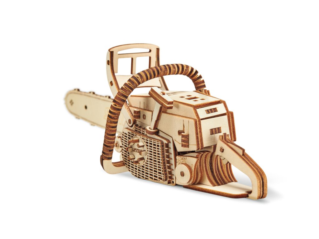 Poskládejte si motorovou pilu! Naše dřevěná skládačka řetězové pily v 3D provedení se skládá ze 4 dřevěných panelů - rozměry 21 x 34 x 0,3 cm. Vyrobeno z FSC certifikovaného dřeva.