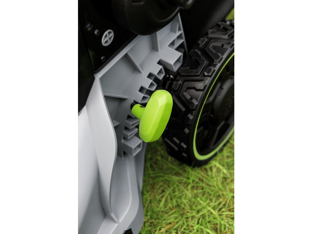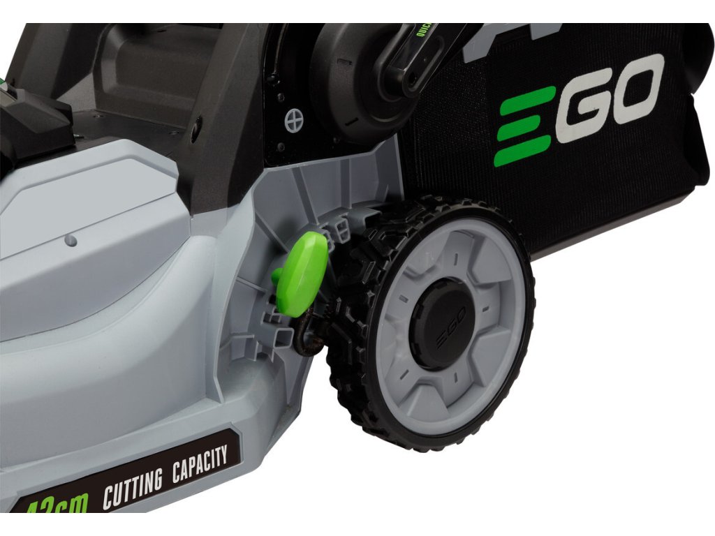 Model EGO LM 1701E - záběr sečení 42cm, bez vlastního pojezdu, objem sběrného koše 55L, teleskopická a výškově nastavitelná komfortní rukojeť.
