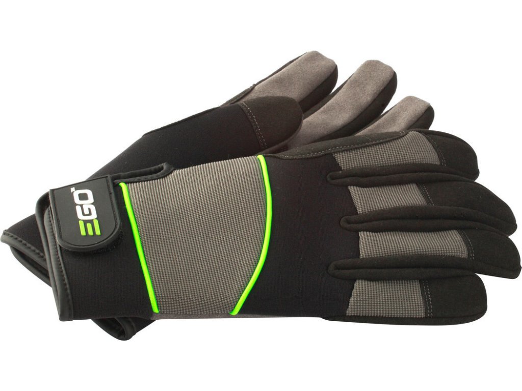 Pracovní rukavice EGO jsou velmi pohodlné a příjemné pracovní rukavice ze syntetické kůže, vnější strana kloubů chráněna pružným neoprenem, hřbet ruky ze strečového odolného materiálu. Suchý zip na zápěstí usnadňuje navlékání rukavic. Pěnové výstelky na dlani pohlcují vibrace. Rukavice jsou přímo určené pro práci se sekačkami, řetězovými pilami, křovinořezy, vyžínači, nůžkami na živý plot, fukary apod.