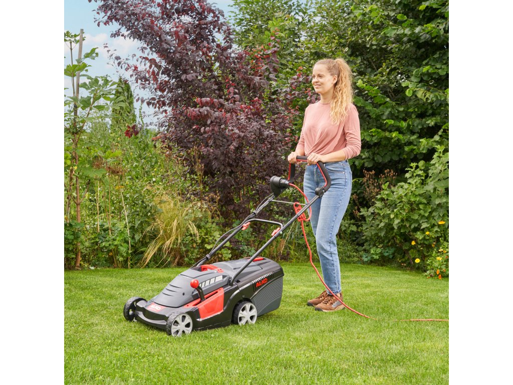Bezhlučný elektromotor o výkonu 1200 W zaručuje u této lehké sekačky (pouze 15 kg) perfektní posečení Vašeho trávníku. Výška sečení může být nastavena centrálně jednou pákou. Díky velkým XL kolům (145/155 mm), spolu s nízkou hmotností, se jedná o velmi obratnou sekačku pro dlouhodobou práci bez vynaložení velké námahy – ideální pro dámy nebo starší uživatele.