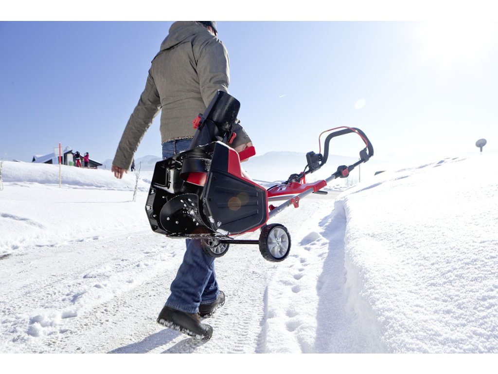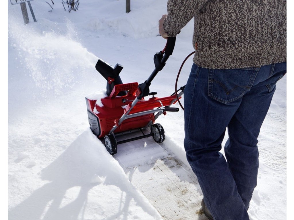 Silný 230V/2000kW motor se spouští pomocí bezpečnostního spínače na držadle. Čistící lopatky jsou vyrobeny z tvrzené gumy s ocelovými výztuhami. Sníh je odhazován až do vzdálenosti 10 m a usměrněn vyhazovací šachtou otočnou v rozsahu 190 stupňů. Výšku držadla lze pomocí rychloupínačů snadno přizpůsobit výšce obsluhy. Praktický úchyt usnadňuje přenášení frézy. A pokud právě není potřeba, díky sklopnému držadlu jí můžete snadno skladovat na malém prostoru.