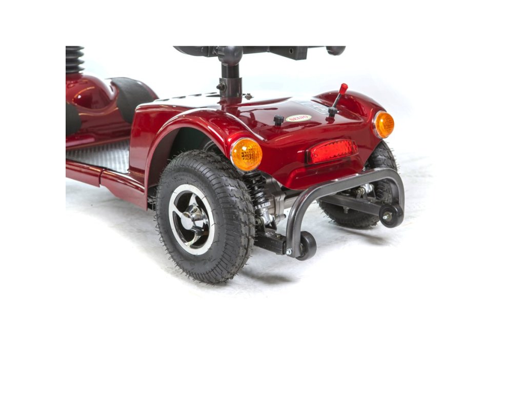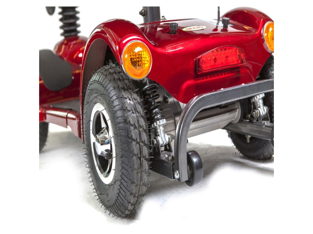 Pohodlný čtyřkolový elektrický invalidní vozík se snadným ovládáním. Rychlost vozíku se ovládá pomocí páček, které jsou součástí řídítek. Potenciometrem lze navíc před jízdou nastavit maximální rychlost. Součástí elektrického invalidního vozíku je nákupní košík na řídícím panelu. Otočné sedadlo s aretací polohy poskytuje snadné nasednutí. Elektrický invalidní vozík se nabíjí pomocí běžné nabíječky na 230V a snadné přístupného dobíjecího konektoru. Promyšlený sklopný systém umožňuje snadný transport v zavazadlovém prostoru běžného vozidla. K vozíku lze přikoupit držák holí a krycí plachtu.
