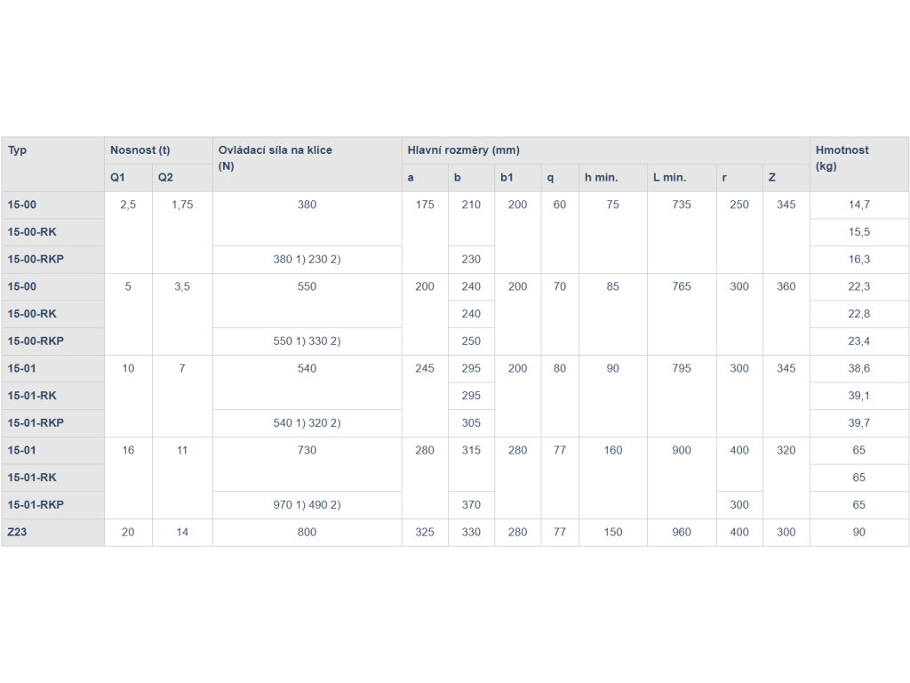 - kryt převodového ústrojí (u nosnosti 2,5t -10t) opatřen mazací zátkou umožňující promazání převodů bez nutnosti demontáže krytu