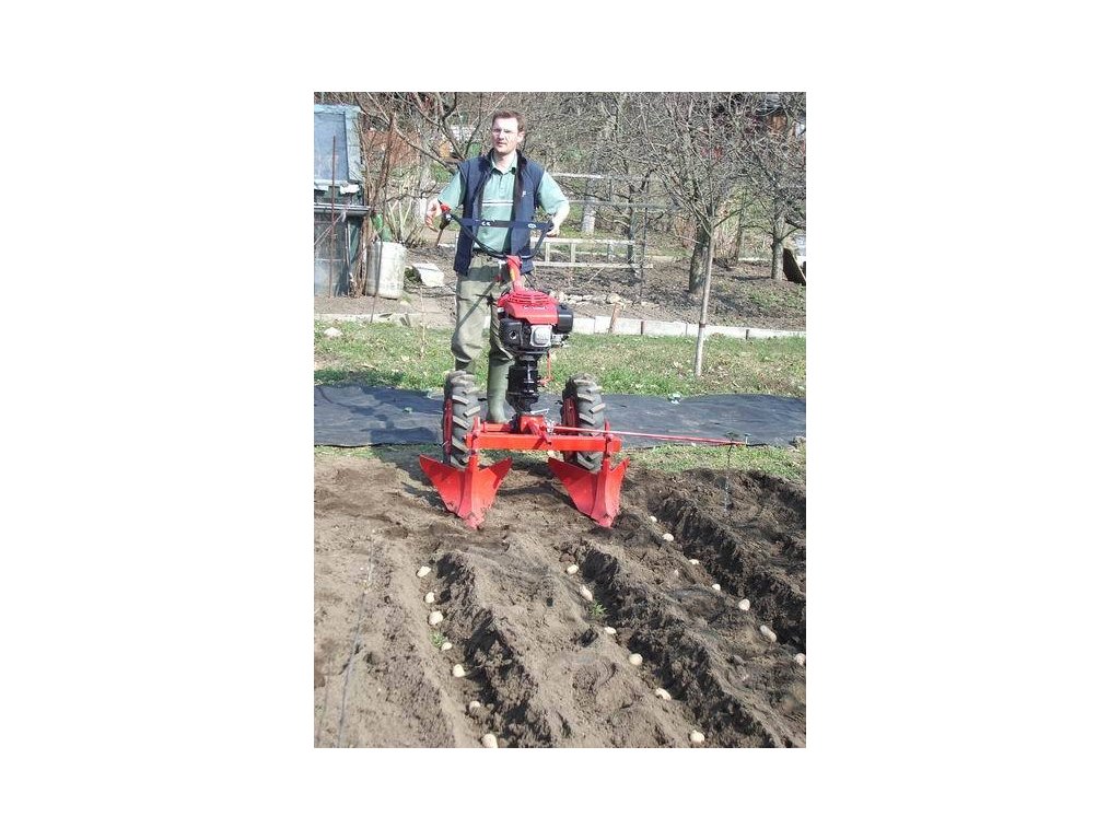 Hrobkovací radlice, nutno dokoupit NM1-001 nosič hrobkovacích radlic. Tím dostaneme sadu Nosič hrobkovacích radlic se dvěma radlicemi. Tato sada slouží k připravení hrobků k sázení brambor.