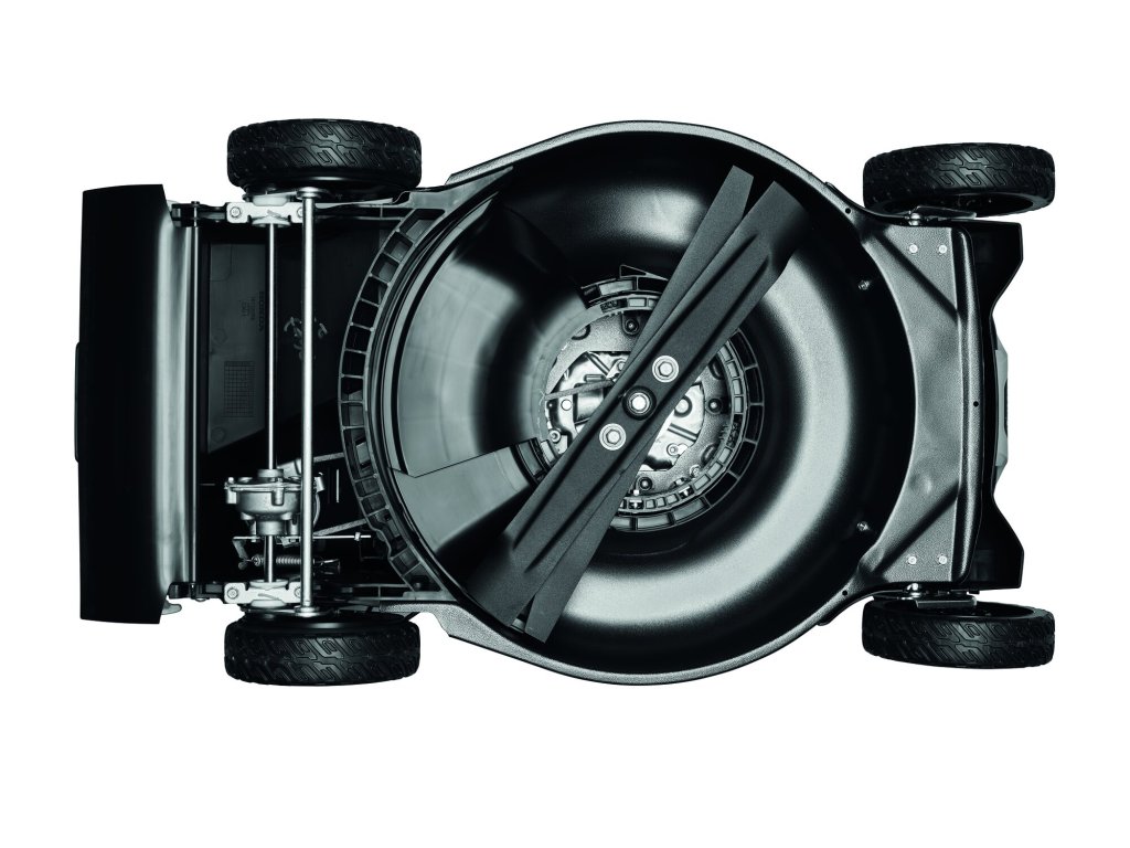 Podvozek je vylisován z jednoho kusu ocele jako kompaktní díl, bez jakýchkoliv svárů či šroubových spojení. Tvar sekacího prostoru a důmyslně řešené prolisy poskytují podvozku mimořádnou pevnost tak, aby se podvozek při práci nekroutil, byl schopen přenést sílu motoru na sekací nůž a vydržel namáhání od ovládací rukojeti. Zároveň však musí být schopen pohlcovat nežádoucí vibrace. Kataforézní povrchová úprava chrání před korozí, otěrem a působením UV záření. Takový podvozek nepraská a nerezaví.