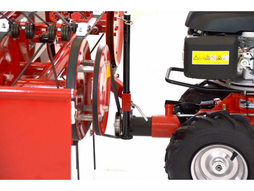 Pásový obraceč sena OP-115 s bantamovými koly však může být pomocníkem po celý rok. Na jaře ho lze využít při správném seřízení přítlaku hrabacích pružin k aktivnímu provzdušnění trávníku, na podzim zase pro shrabání listí. Na zimu pak lze tento stroj doplnit o lopatky na odklízení sněhu.