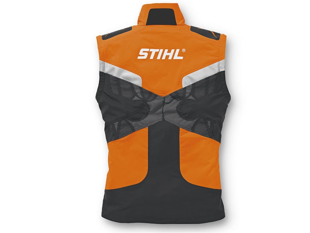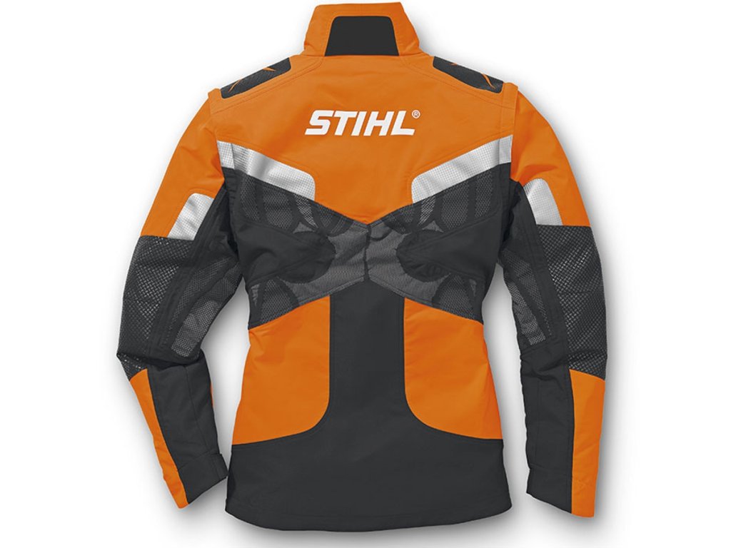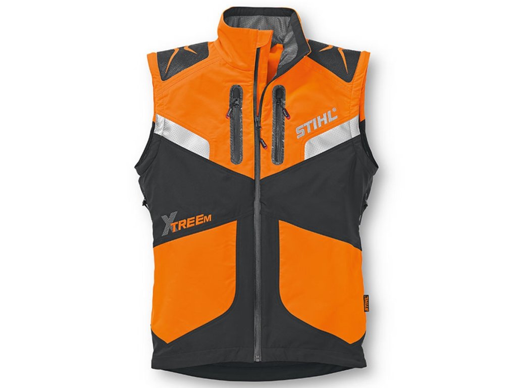 Pracovní blůza STIHL ADVANCE X-TREEm. Oděvy vítězů Německého mistrovství v lesních pracích 2017, profesionální třída. S mnoha užitečnými detaily: vysoce elastický materiál ProElast pro optimální volnost pohybu a prodyšnost. Barva černá a signální oranžová s reflexními prvky. Odnímatelné rukávy, odolný materiál na ramenou, s nastavitelnými větracími otvory pro příjemné tělesné klima. Ochrana proti oděru pomocí keramických teček na lokti. Vnější oblast ramen s ochranou proti odření DotGrip. Vysoká viditelnost díky velkému podílu signální varovné oranžové barvy. Dvě kapsy na prsou, jedna vnitřní a jedna kapsa na rukávu.