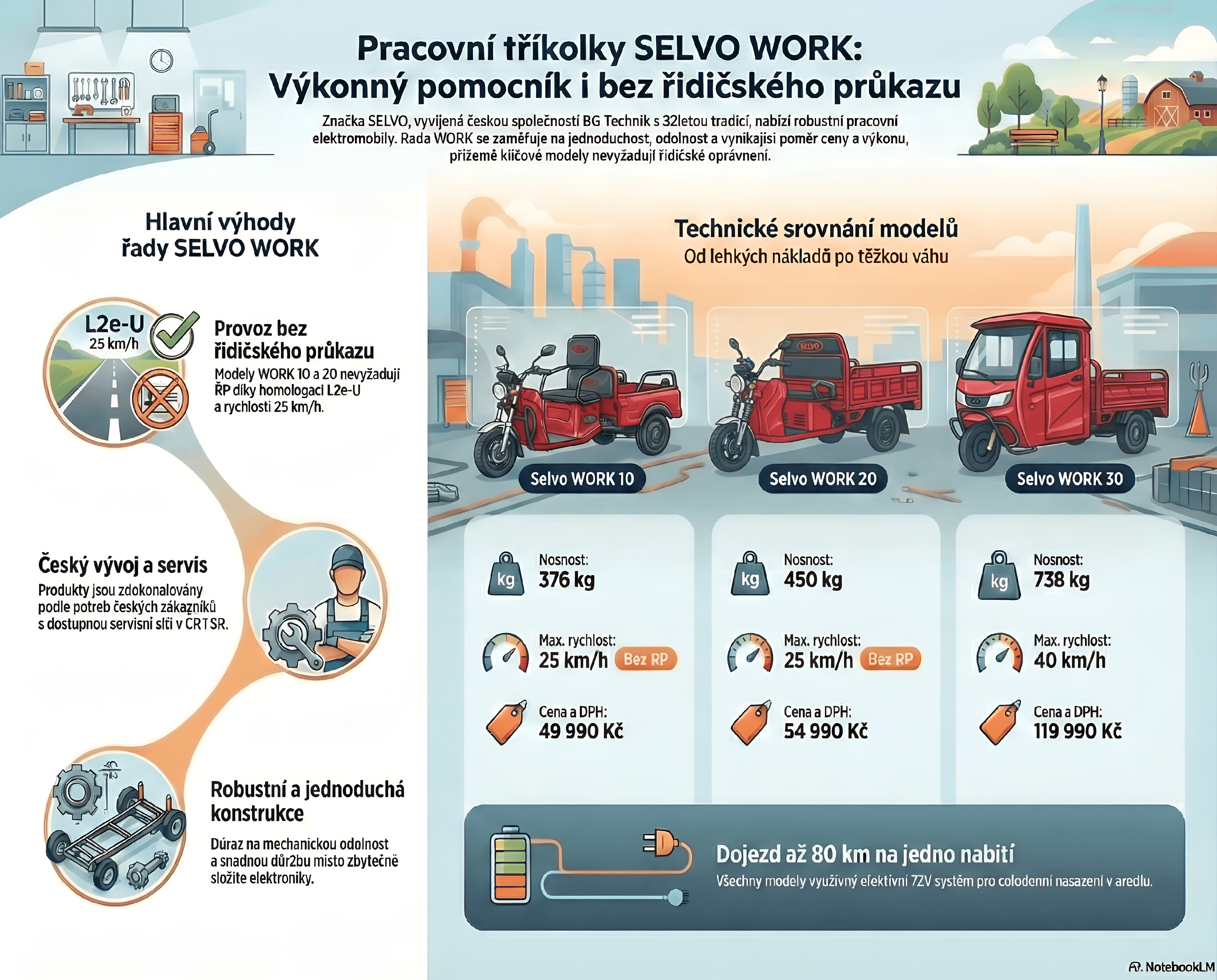 Hledáte spolehlivý a úsporný způsob, jak přepravit materiál v areálu firmy, v obci nebo na vlastní zahradě? Řada Selvo WORK přináší robustní elektrické tříkolky navržené přímo pro potřeby českých uživatelů.