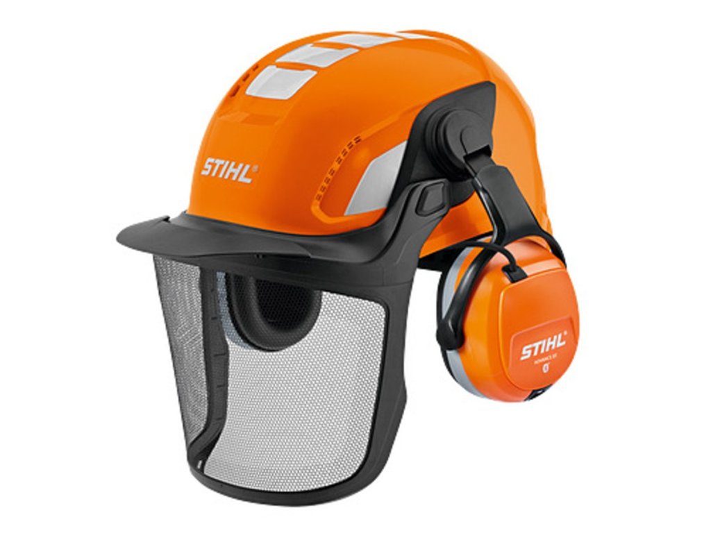 S přilbovou soupravou STIHL ADVANCE X-Vent BT můžete komunikovat přes Váš smartphone i při práci nebo přijímat informace, aniž byste museli vytahovat smartphone z kapsy. Umožňuje to přenos dat prostřednictvím Bluetooth®. Přijímejte hudbu a zprávy nebo telefonujte s třítlačítkovým ovládáním přímo přes ochranu sluchu Vaší přilby, aniž byste se přitom dotkli smartphonu. Individuálně nastavitelná ochrana sluchu. Velmi vysoká propustnost světla. Elastické těsnění na hledí přilby proti vniknutí nečistot. Odpovídá EN 352, EN 397, EN 1731.