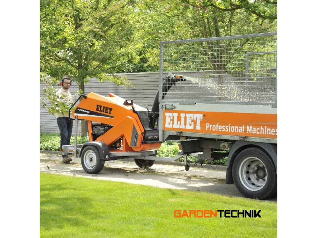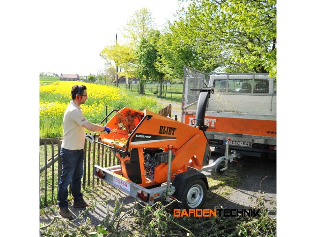 Štěpkovač ELIET SUPER PROF ON ROAD je určen zejména pro profesionální zahradníky a realizátory. V provedení na taženém kolovém podvozku určeném pro provoz na pozemních komunikacích umožnuje rychlý přesun mezi vzdálenými místy požadovaného pracovního nasazení. Štěpkovač zpracovává větve a zelený odpad o maximálním průměru dřevní hmoty 130 mm.