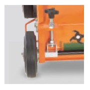 Přední kola se dají plynule nastavovat. Protože se výškové nastavení provádí na každém kole zvlášť,nožový hřídel tak má přes celou pracovní šířku správné nastavení hloubky.