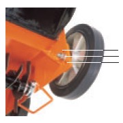 2. Volné nožeKaždý unášeč nože na hřídeli má dva zpětně sklopné (volné) nože. Těmito noži můžete vertikutovat trávník obsahující také kamínky a kořeny stromů apod., kde nelze doporučit použití pevných nožů. Každý nůž má závěsné oko s nylonovým povlakem a otáčí se kolem ocelového čepu. I při silném namáhání vydrží toto zavěšení nožů více než 100 hodin. |
