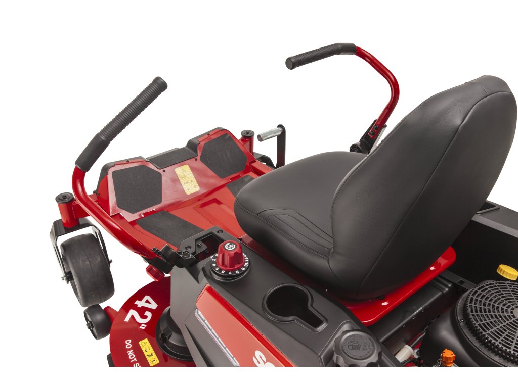 Výšku sečení lze snadno nastavit pomocí ovládacího kolečka a je k dispozici ve 13 polohách mezi 25 až 102 mm. Díky odolnému ocelovému žacímu ústrojí se šířkou sečení 107 cm můžete efektivně a rovnoměrně sekat trávníky až do 12 000 m². Hydrostatická převodovka, ergonomická poloha sezení, elektrické zapínání nožů a integrované LED světlomety doplňují komfortní balíček této sekačky s nulovým poloměrem otáčení.