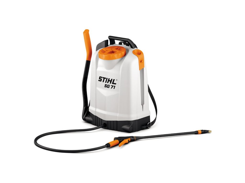 Zádový manuální postřikovač STIHL SG 71 pro profesionální nasazení. Komfortní obsluha díky umístění čerpadla vpravo i vlevo. Vysoce kvalitní popruhy a tvarovaná zádová deska pro pohodlné nošení. Ergonomický uzavírací ventil s manometrem.