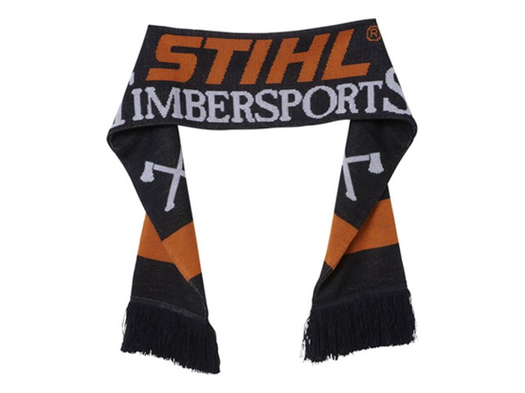 - Upletené sekery a „STIHL TIMBERSPORTS®“ v oranžové a bílé.