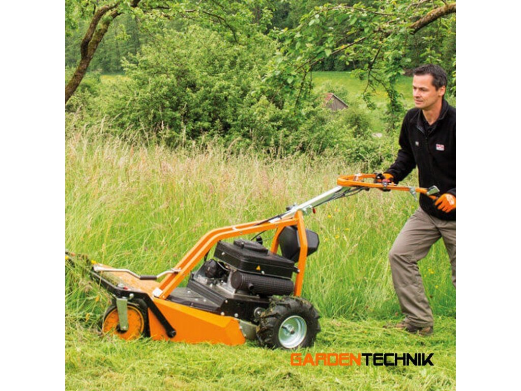 Velmi výkonná sekačka AS Motor, jejíž principem je síla - ať už jde o silné stoupání, silný porost nebo silnou šířku záběru 61 cm. Poradí si ve strmých polohách, na velkých plochách v silném porostu, ve vysoké trávě a křovinách. Uzávěrka diferenciálu ve spojení s pětistupňovou převodovkou přitom zaručuje trvalou trakci, obratnost a bezpečnost. AS systém křížového nože spolehlivě rozmělňuje pro působivé výsledky sečení, přičemž síla sečení je maximalizována převodem 2:1 mezi motorem a nožem.