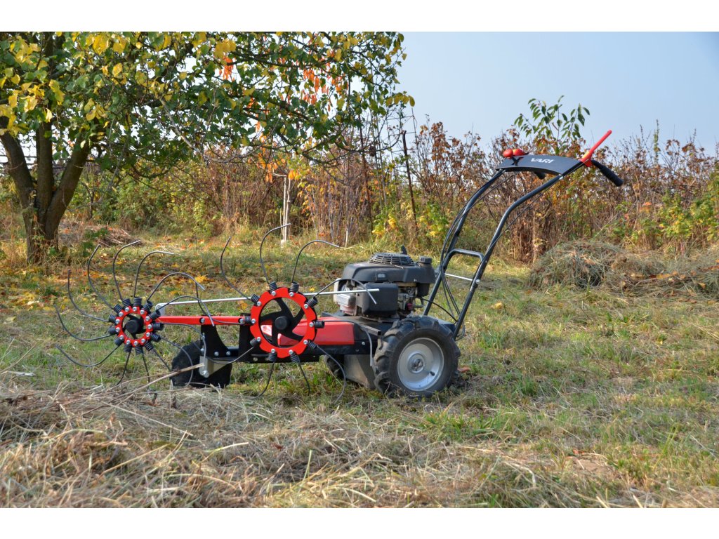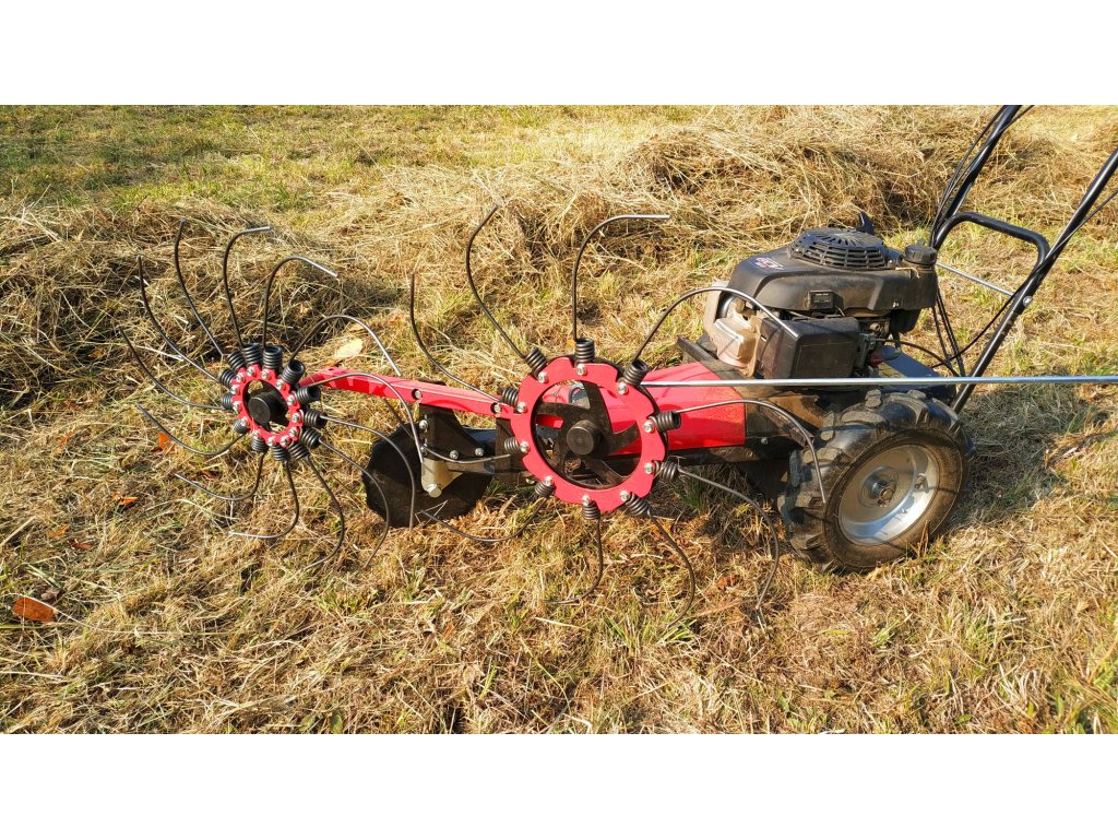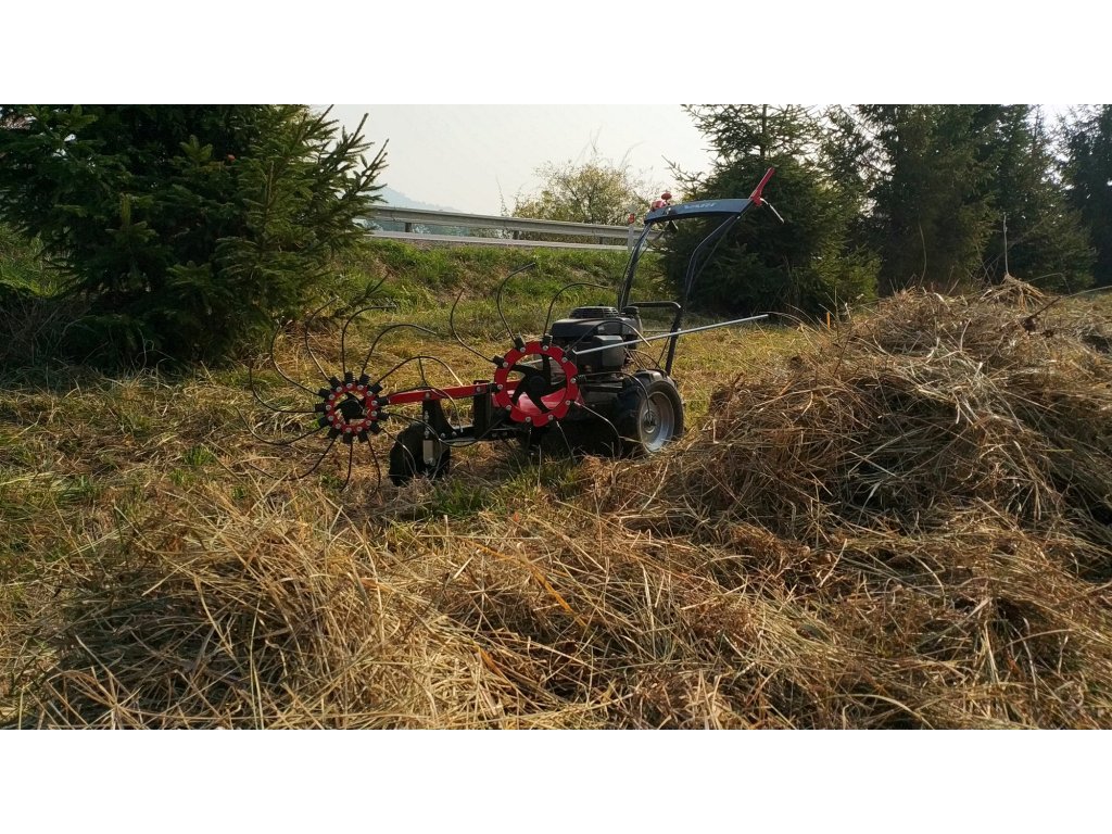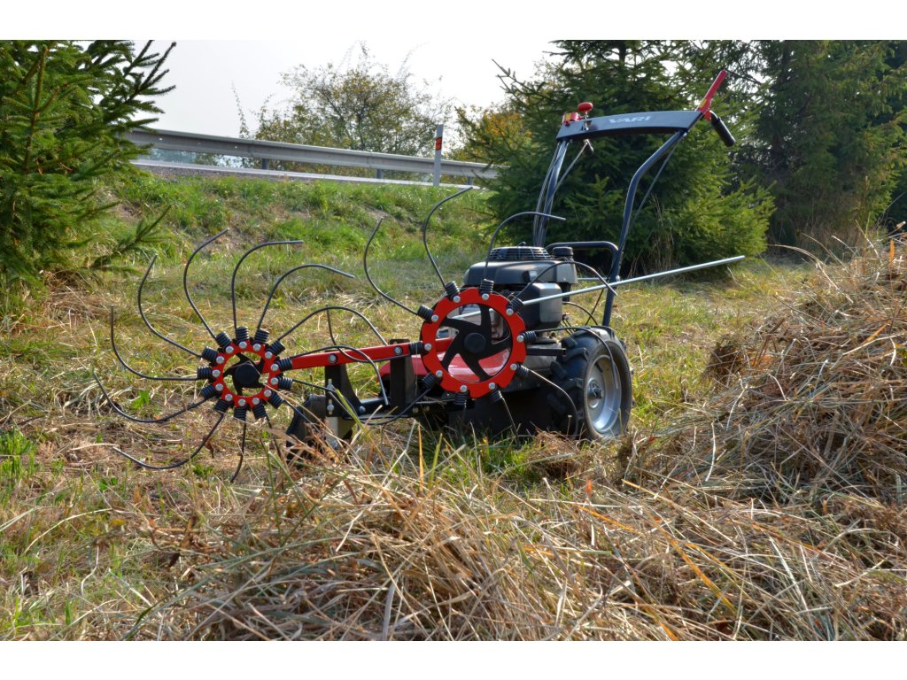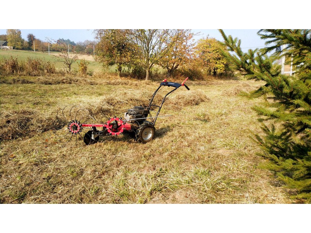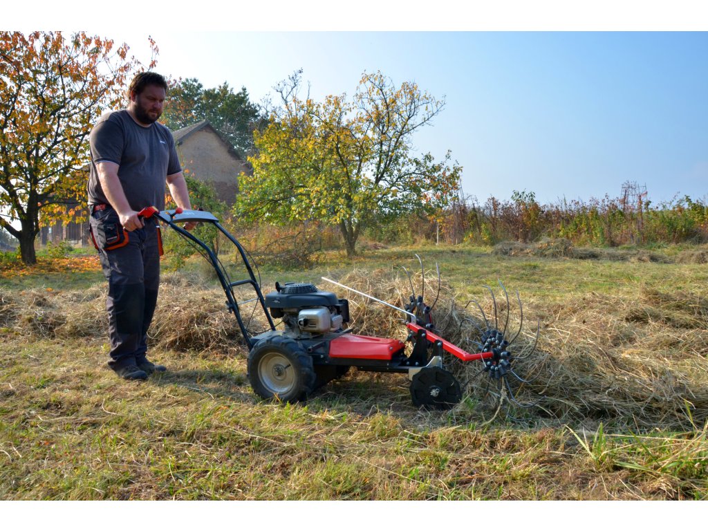 Jednořádkový paprskový shrnovač (s obracením) píce SH-600 vychází z velkých paprskových obracečů za zemědělské traktory. Jeho dvě paprsková kola s kuličkovými ložisky vybavené pružinovými pruty (paprsky) jsou poháněna kontaktem se zemí, čemuž ještě napomáhá rádlovací výškově stavitelné opěrné kolo. Senohrab s pracovní šíří záběru 60 cm je vybaven prutovou ochranou, která zabraňuje přepadávání sena na motor nosiče MAX. Pomocí senohrabu SH-600 si posečenou trávu nejprve rozhodíte po louce, následně ji obrátíte a v poslední řadě s ním seno skulíte na hromadu.