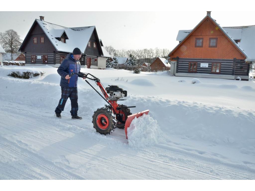 Díky polohovacímu držáku a ruční páky lze radlici zvednout do přepravní polohy přímo z místa obsluhy. Výrazně se tím zvýšil uživatelský komfort a usnadnily se přejezdy soupravy s připojenou shrnovací radlicí. Nový držák radlice zároveň umožňuje lepší kopírování terénu, což výrazně přispívá ke zvýšené efektivitě odhrnování sněhu.