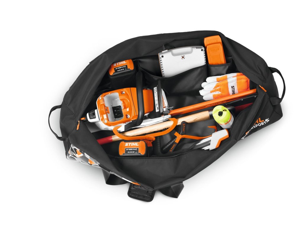 Univerzální řešení pro přepravu a skladování řetězové pily a příslušenství (předchozí brašny/kufry byly určeny pouze pro řetězové pily). Taška je z vodoodpudivého materiálu a na rozdíl od předchozích přepravních tašek nemá pevný tvar, díky čemuž nabízí možnosti flexibilní přepravy dalšího příslušenství a také snadné uskladnění, když se zrovna nepoužívá.