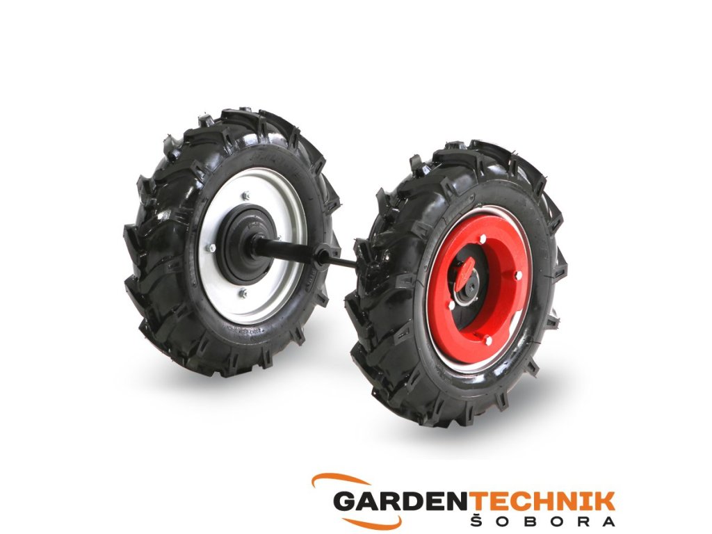 Tažnou nápravu TN-01 tvoří 12" kola, poloosy se šestihranným unášečem, které jsou nasunuty do volnoběžného náboje kola, a osový čep, který prochází koly, poloosami a převodovkou, včetně spojovacího materiálu. Volnoběžka v kole je vybavena aretačním palcem pro čtyři funkce volnoběžky. Aretační palec se ovládá pomocí ovládací rukojeti s šipkou, vyznačující směr otáčení kola. Kola mají pneumatiky s traktorovým šípovým vzorem na plechových ráfcích a jsou přišroubována čtyřmi šrouby na volnoběžný náboj. Kola jsou osazena sadou vnějších závaží. Vnitřní závaží lze dokoupit. Tažná náprava se k převodové skříni připojuje nasazením poloos na výstupní hřídel převodové skříně a zajišťuje se stažením ke skříni pomocí dlouhého osového čepu skrz poloosy a skříň. Po výměně tažné nápravy za kypřicí ústrojí vznikne profesionální rotavátor o záběru až 115 cm.