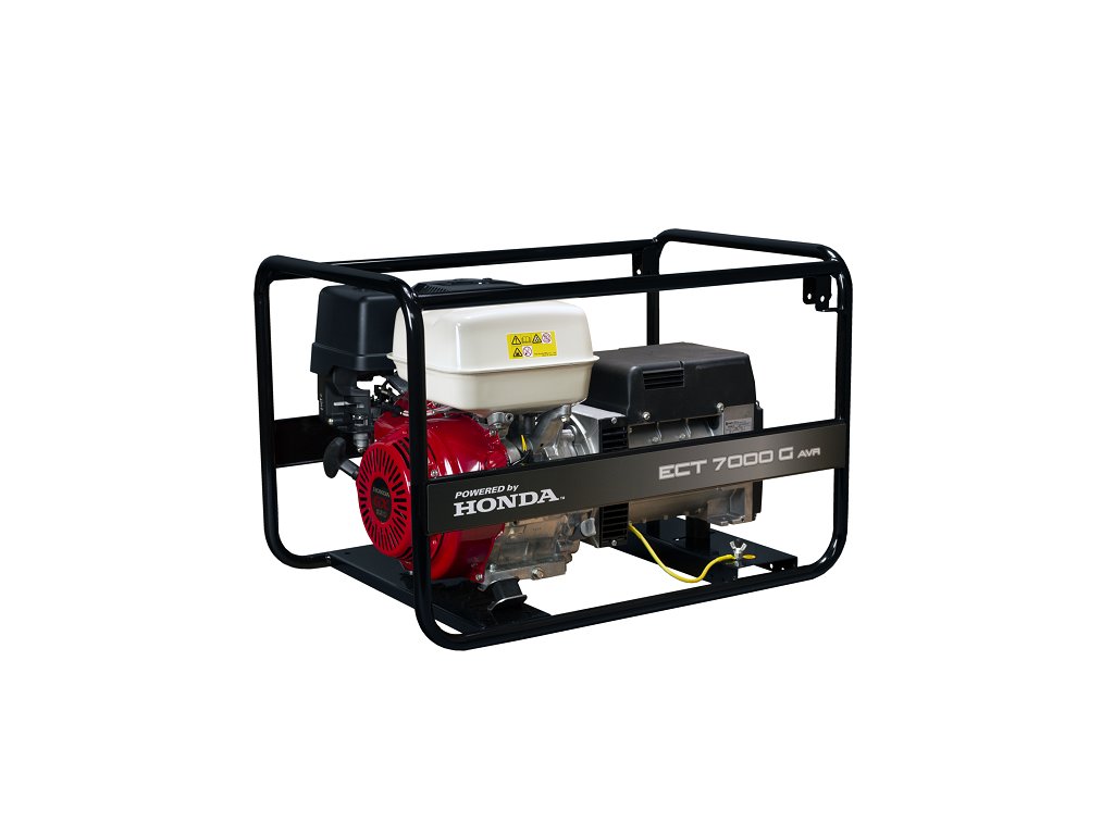Elektrocentrála ECT 7000G AVR: model velké, třífázové elektrocentrály s regulací výstupu indukčním trafem. Výkonný a vysoce odolný alternátor pohání spolehlivý profesionální motor řady GX s dlouhou životností a to vše ukotveno v pevném a odolném ocelovém rámu.