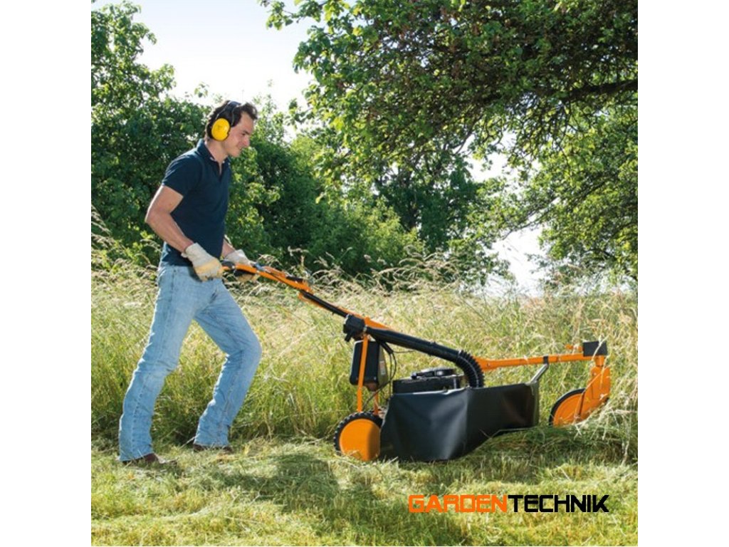 Pro tento stroj nejsou problémem ostré zatáčky, rychlý zpětný chod ani velké plochy. Díky trojkolovému šasi je specialista na sekání kolem stromů, keřů a překážek: snadno se používá, je rychlý a agilní. Extrémně výkonný: díky silnému pohonu zadních kol je i ten nejstrmější svah rovinkou. Každý stroj je vybaven trojnásobným nožem a klikovou hřídelí včetně motorové brzdy. Pokud přestanete ovládat jednu ovládací páku, nože se okamžitě zastaví.
