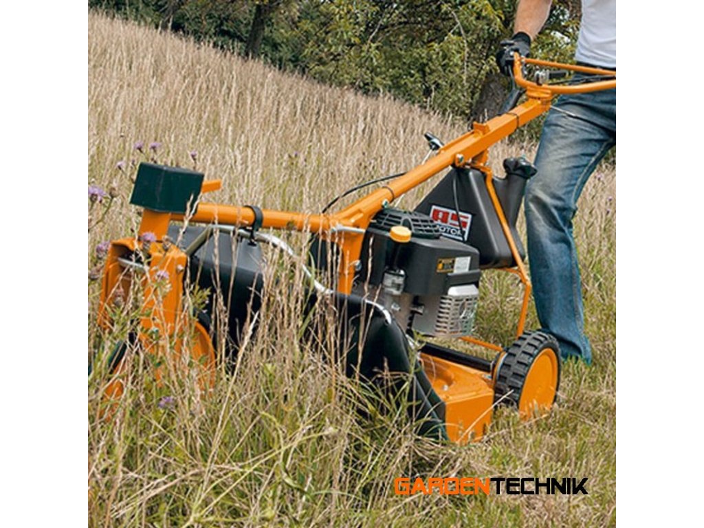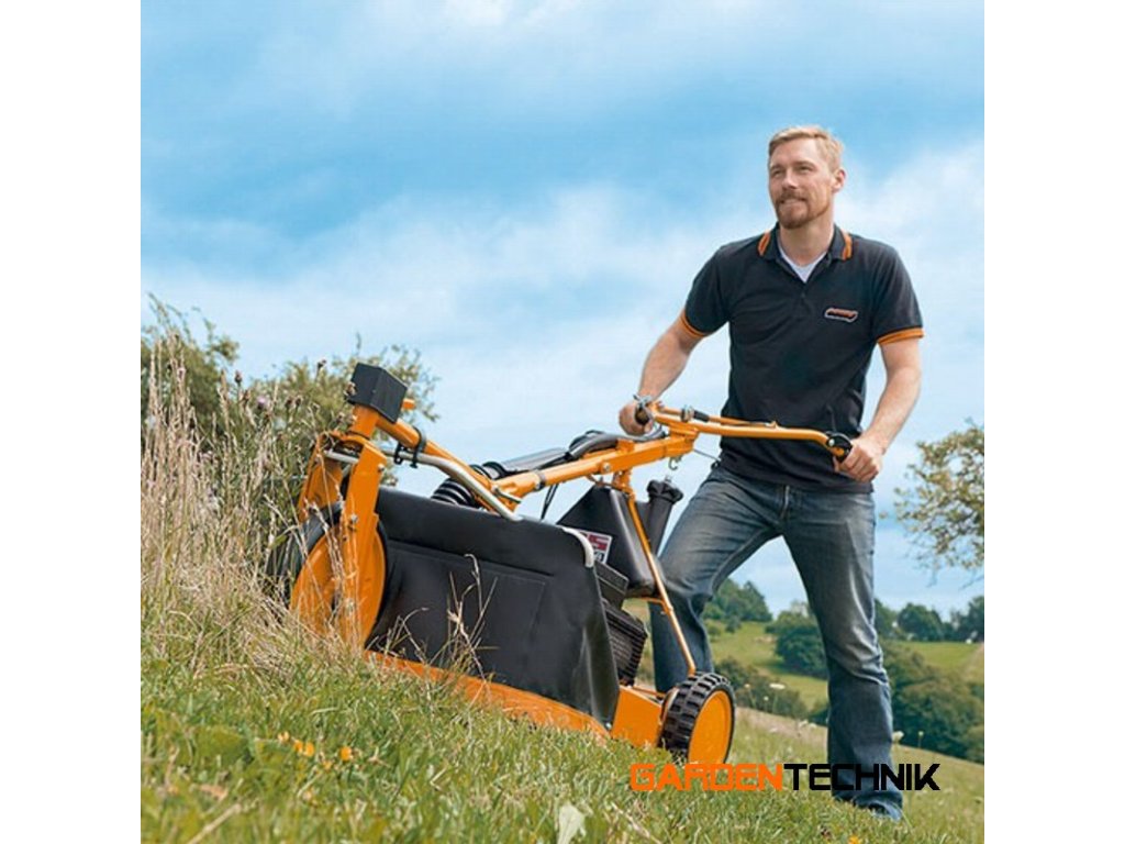 Pro tento stroj nejsou problémem ostré zatáčky, rychlý zpětný chod ani velké plochy. Díky trojkolovému šasi je specialista na sekání kolem stromů, keřů a překážek: snadno se používá, je rychlý a agilní. Extrémně výkonný: díky silnému pohonu zadních kol je i ten nejstrmější svah rovinkou. Každý stroj je vybaven trojnásobným nožem a klikovou hřídelí včetně motorové brzdy. Pokud přestanete ovládat jednu ovládací páku, nože se okamžitě zastaví.