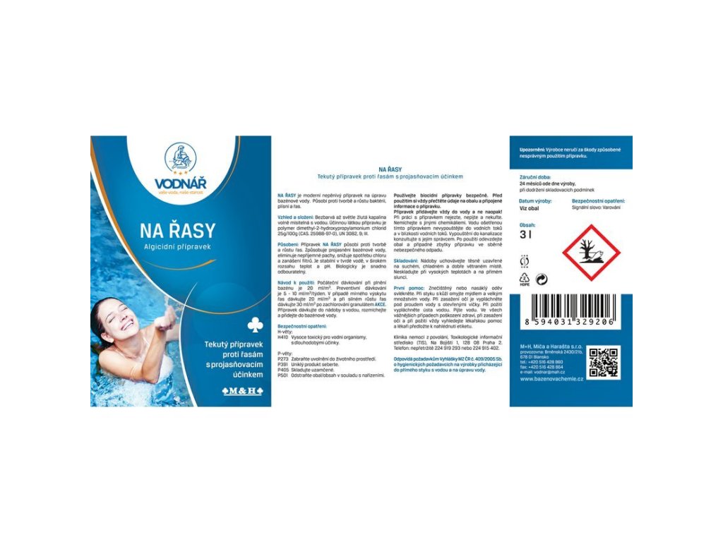 Provozní dávkování: 10 ml/m³ vody.