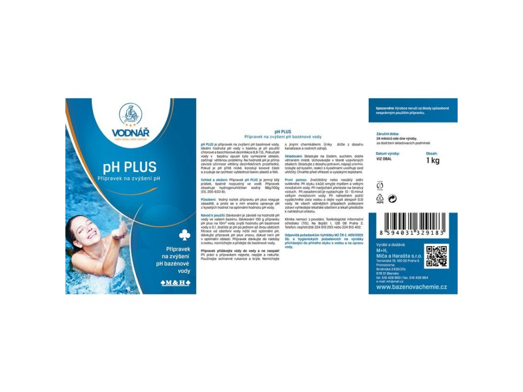 pH plus je přípravek na zvýšení pH bazénové vody ve formě prášku. Ideální hodnota pH v bazénu je při použití chlorové dezinfekce 7,2-7,6. Při používání kyslíkové chemie je ideální oblast pH v rozsahu 7,0-7,4. Pokud pH vody opustí tyto vymezené oblasti, mohou začít problémy.