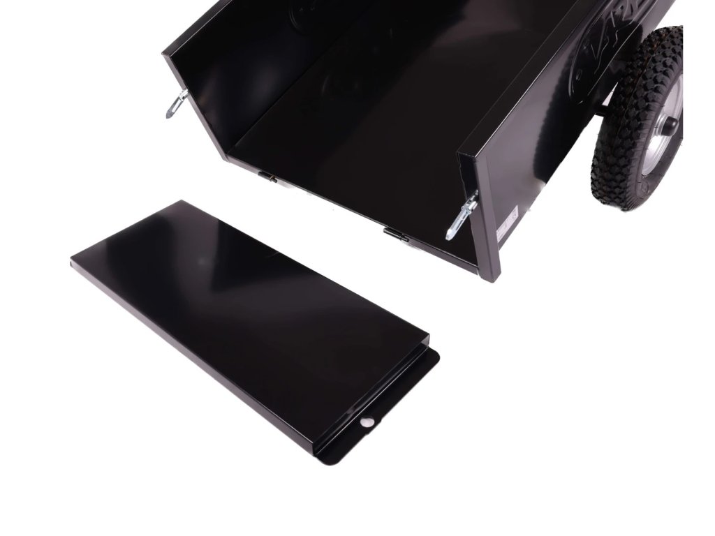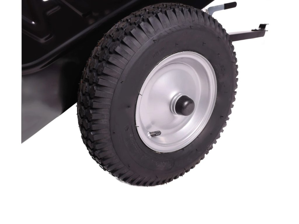 Kola 4.00-8 na ložiskách, hřídel Ø 20 mm, nosnost 300 kg, hmotnost 49 kg, sklápěcí korba. Barevné provedení: černá.
