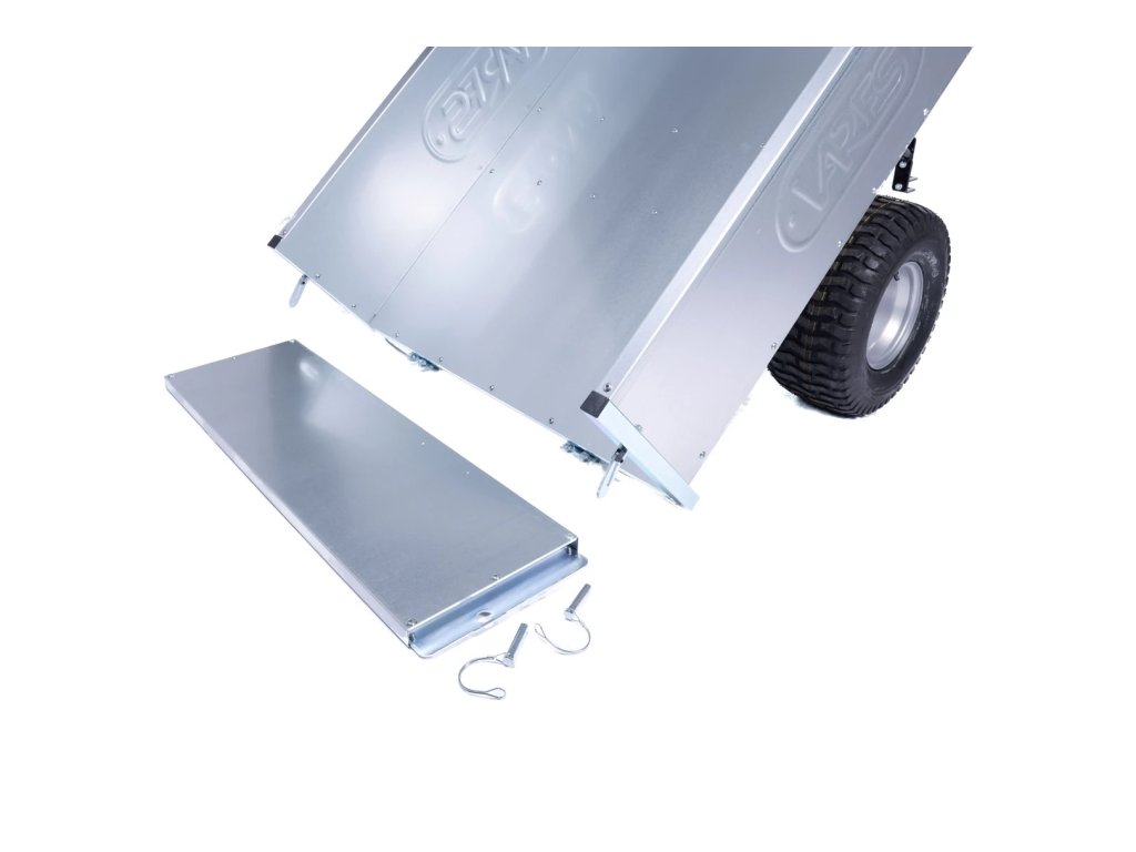 Absolutní novinka na evropském trhu! Dokonalá ochrana povrchu žárovým zinkováním na několik desetiletí! Minimální hmotnost zinkového povlaku 275 g/m2 s kresbou velmi jemných zinkových květů. Profesionální prachotěsné náboje kol se zesílenou hřídelí 22 mm. Zesílená konstrukce ocelové korby snýtovaná pevnostními nýty, tloušťka materiálu korby 1,5 mm, tloušťka profilovaného nosníku 3 mm. Zcela nový systém profesionálních pantů na zadních dvířkách korby. Dvojitě zalisované, zaoblené a dokonale hladké okraje korby pro snadnou a bezpečnou manipulaci. Kompatibilní s nástavbami VARES. Vozíky jsou dodávány se sestavenou nápravou, jednoduchá a rychlá montáž kol na čtyři šrouby. Dezén pneumatik je velmi šetrný k trávníku.