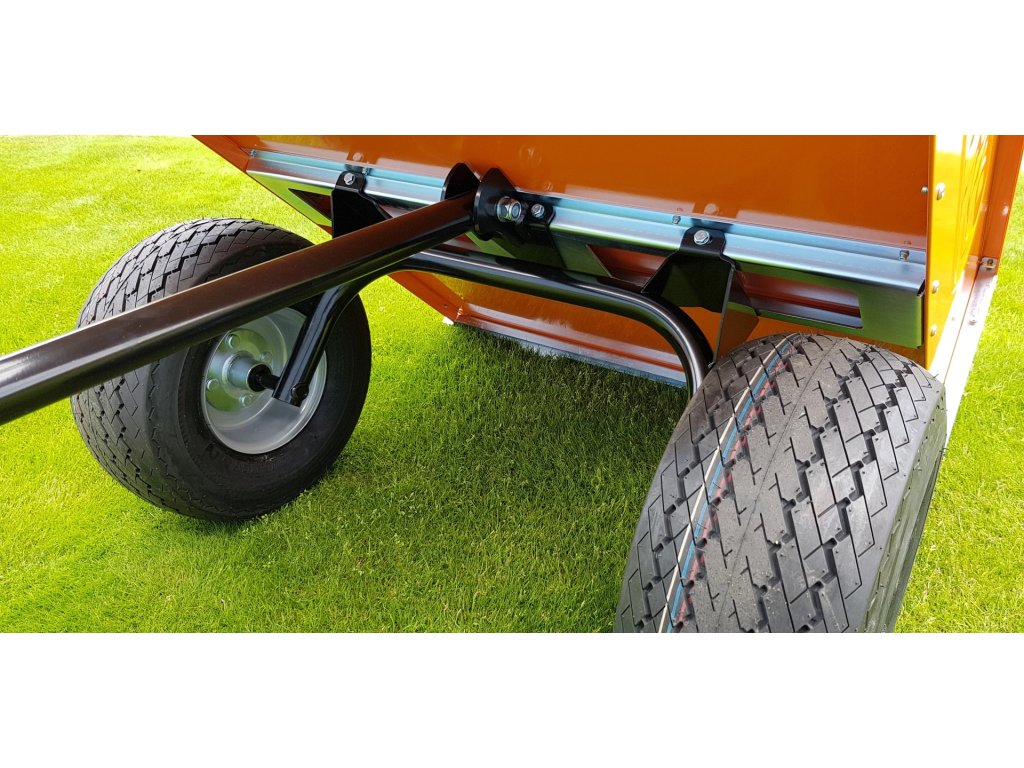 Profi technické řešení, kola 18x8,5-8, valivá ložiska v náboji jsou utěsněna proti prachu a vlhkosti stejně jako u "auto kol", zesílená hřídel Ø 22 mm, nový systém sklápění korby, výklopné a zcela odnímatelné zadní čelo korby, designově a funkčně nové madlo sklápění a zajištění korby, ložná plocha 1240 x 950 x 300 mm, nosnost 400 kg, hmotnost 79 kg.
