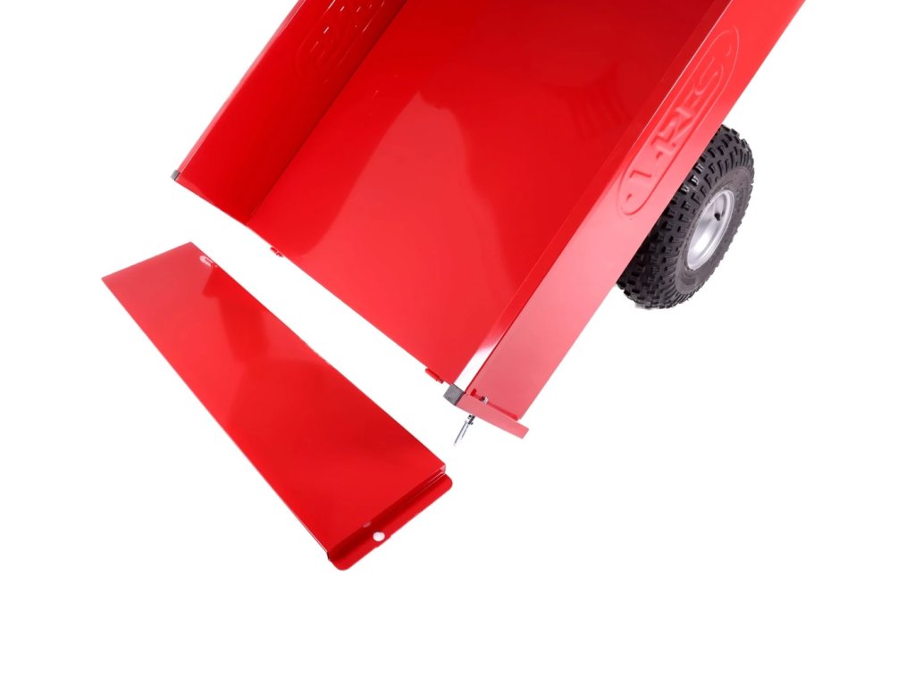 Absolutně největší ložná plocha 1400 x 1210 x 300 mm navržená pro efektivní uložení 7 kusů zeleninových přepravek ve 2 až 3 vrstvách (14 - 21 přepravek), sklápěcí korba, nosnost 400 kg, široké pneumatiky 18x8,5-8, valivá ložiska, hřídel Ø 22mm, výklopné a zcela odnímatelné zadní čelo korby.