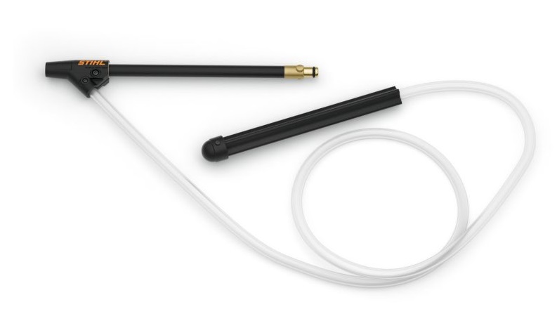 Pískovací zařízení pro tryskání za mokra můžete v případě potřeby snadno připojit k vysokotlakému čističi STIHL pomocí adaptéru – šroubové spojky/rychlospojky STIHL. Pískovací zařízení STIHL pro tryskání za mokra je dlouhé 4 m a je vhodné pro vysokotlaké čističe STIHL RE 80 až STIHL RE 170 PLUS.
